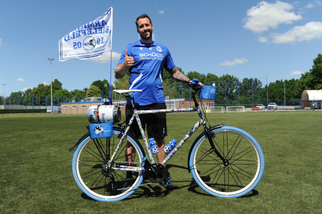 Anlässlich des DFB-Pokal-Einzugs von Arminia Bielefeld starten wir eine besondere Aktion für den guten Zweck: Ein einzigartiges Fahrrad im Arminia-Design – liebevoll gestaltet und mit vielen Details versehen.